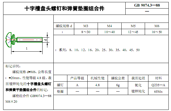 十字槽盘头螺钉和弹簧垫圈组合件